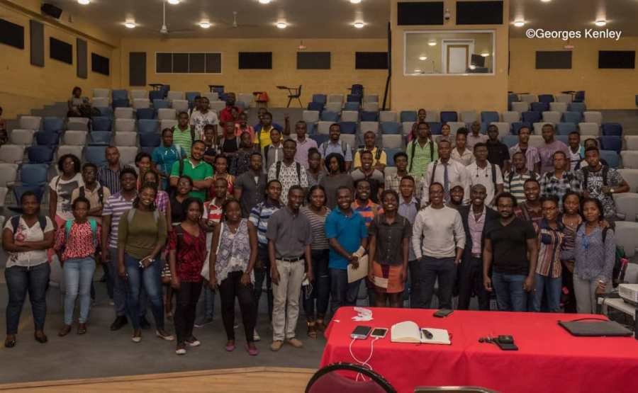 Des jeunes très enthousiastes à la salle de conférence de la faculté de Médecine et de Pharmacie de l’UEH ont participé au débat sur l’avenir de la médecine et les opportunités offertes à partir de l’intelligence artificielle. Ce vendredi 11 janvier 2019, l’invitation a été signée Djinaud Prophète, Président, Directeur général et fondateur de RADIOKAM qui a su réunir le chercheur en intelligence artificielle Ben-Manson Toussaint et Ralph E. François.
